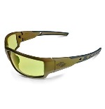 Crossfire Safety Glasses Cumulus 41285. HD Yellow Lens and Tan SDE Frame. Designed for maximum protection. The soft, rubber nose piece allows for all day comfort and the dual mold rubber temples provide grip for better stability.