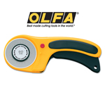 This cutter features OLFA's new ergonomic design providing a comfortable and positive grip. Simply squeeze the handle to engage the blade. Dual-action safety lock allows the user to lock the blade open for comfort and closed for safety The 60mm Rotary Cutter is specially designed to cut through multiple layers of fabric and difficult materials. Accommodates both right and left handed users. Comes with 1 RB60 blade. Uses replacement blades RB60. Perfect for general quilting, cutting delicate cloth, fabric, paper, wallpaper and leather. Can also be used in industrial applications. Free Shipping.WARRANTY: OLFA Handles Are Guaranteed Forever.See Related Product Section Below For All Blade Options That Fit This Knife